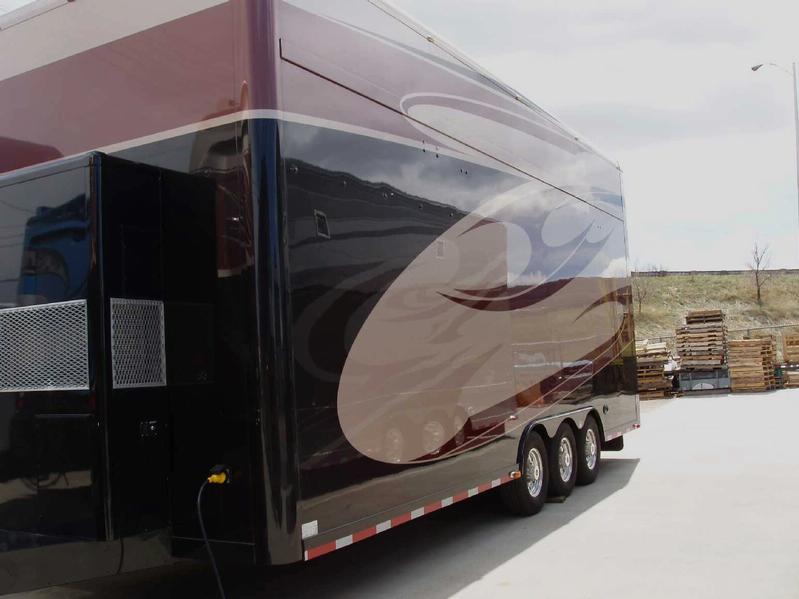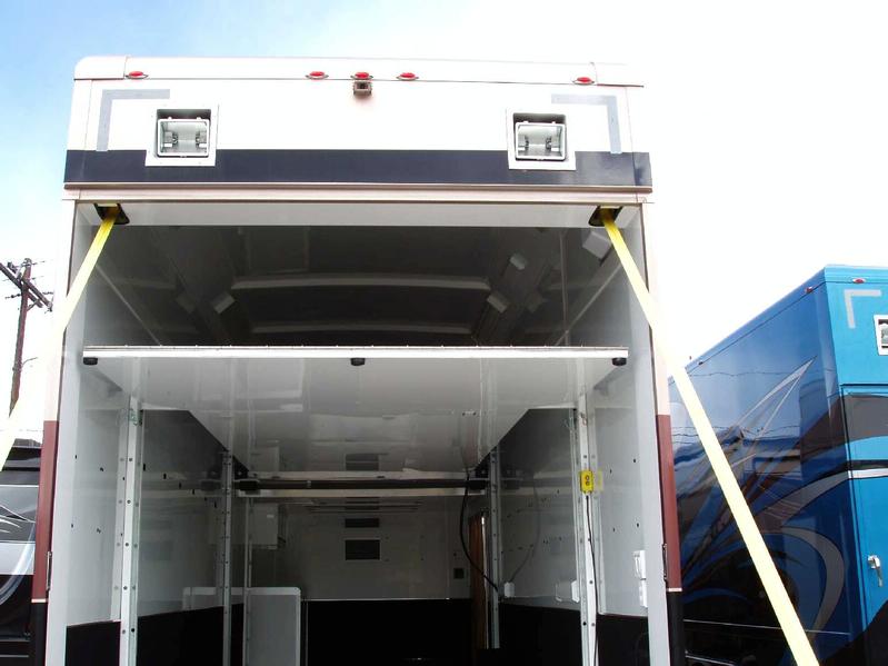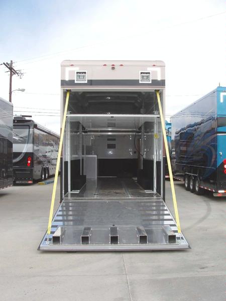 (3) 7,000# AIR RIDE AXLES & ELECTRIC OVER HYDRAULIC BRAKES, 23’ 4,000# INTERIOR CAR LIFT, ALUMINUM FLOORING AND FRP CONSTRUCTION, 97” WIDTH IN READ DOOR & 8’ FRONT ATTIC, FRONT CABINETS & SIDE QUARTZ LIGHTS, 11’ FEET OF INTERIOR HEIGHT, 1 TON BARD A/C & HEAT, ELECTRIC TONGUE JACK, ALCOA ALUMINUM WHEELS, 54” WIDE SIDE DOOR, E-TRACK, BACK UP CAMERA